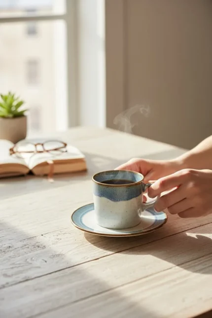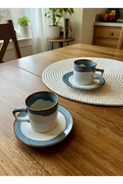 Rustik Stoneware 2’li Porselen Kahve Fincan Takımı – Doğal Dokulu – Dila