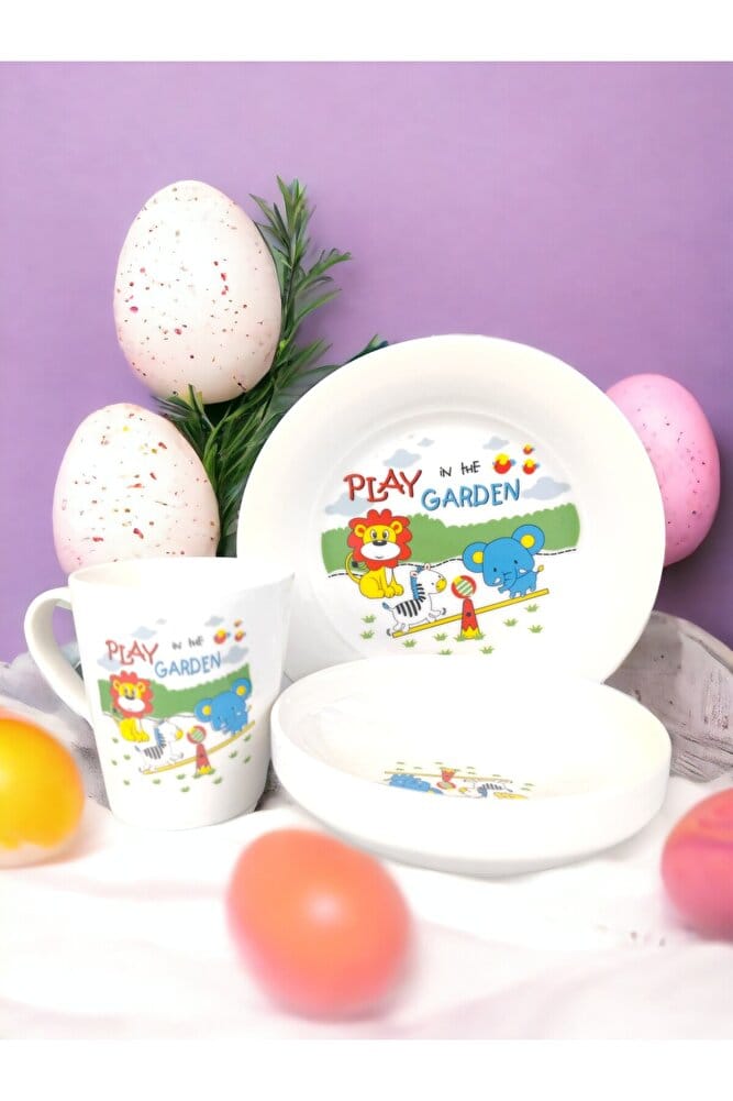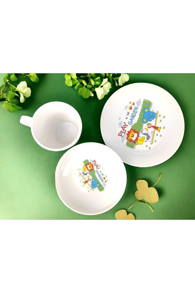 3 parça Bebek mama seti porselen çocuk yemek seti