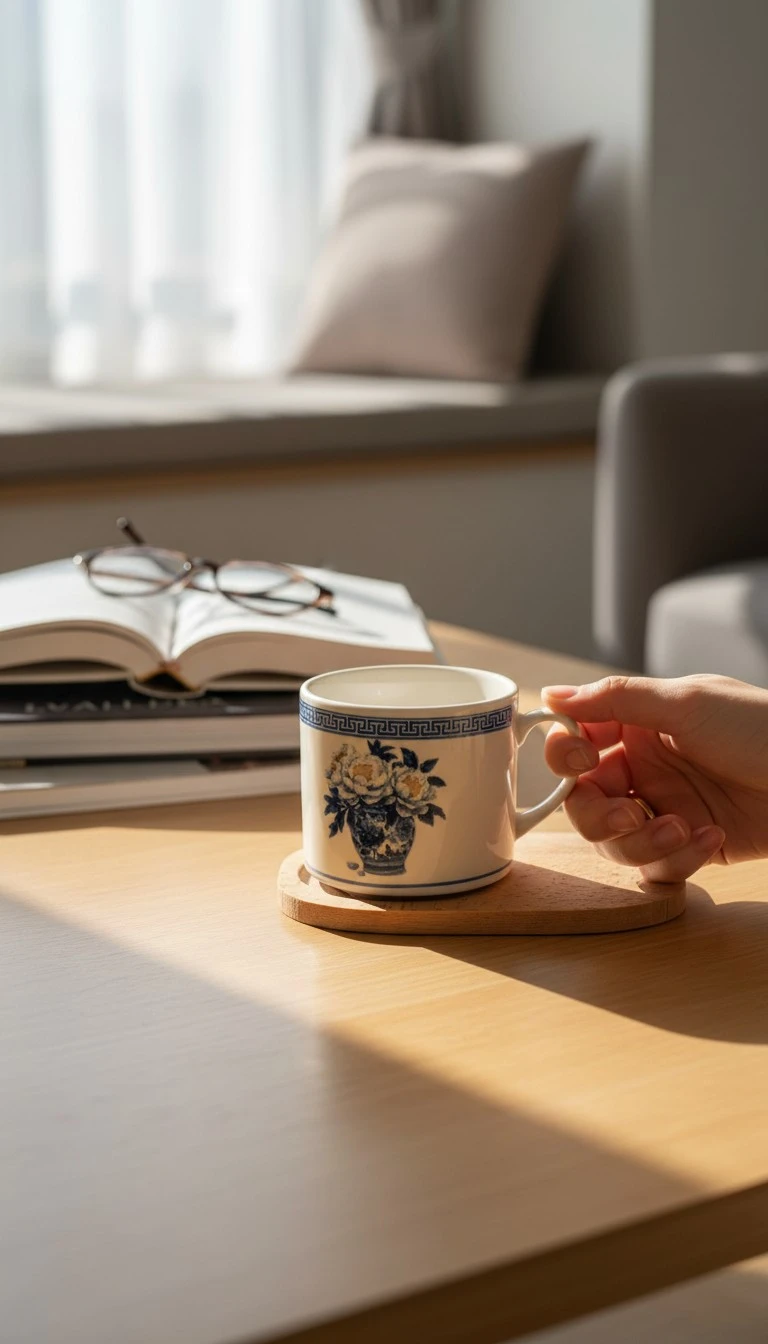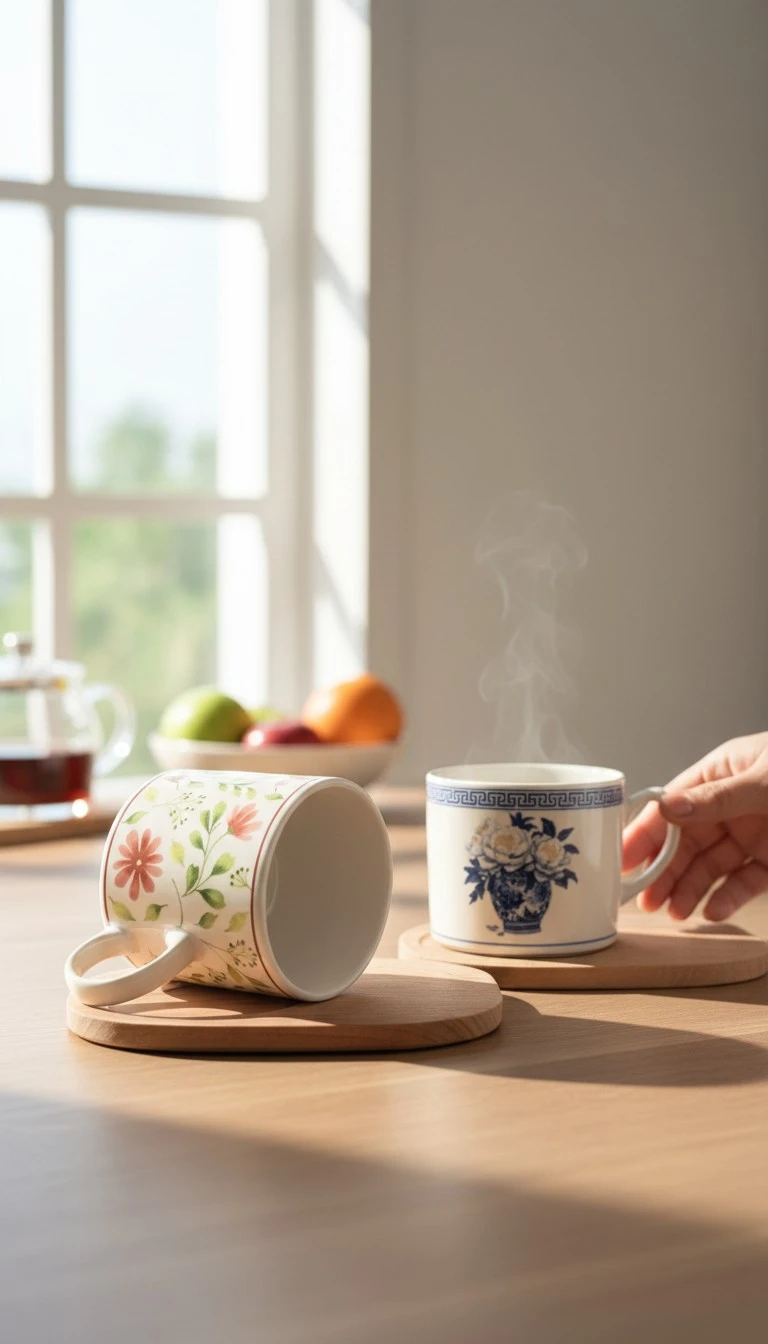 Ahşap servis sunumluklu seramik mavi saray desenli fincan ile içecek sunumlarınızı zenginleştirin.