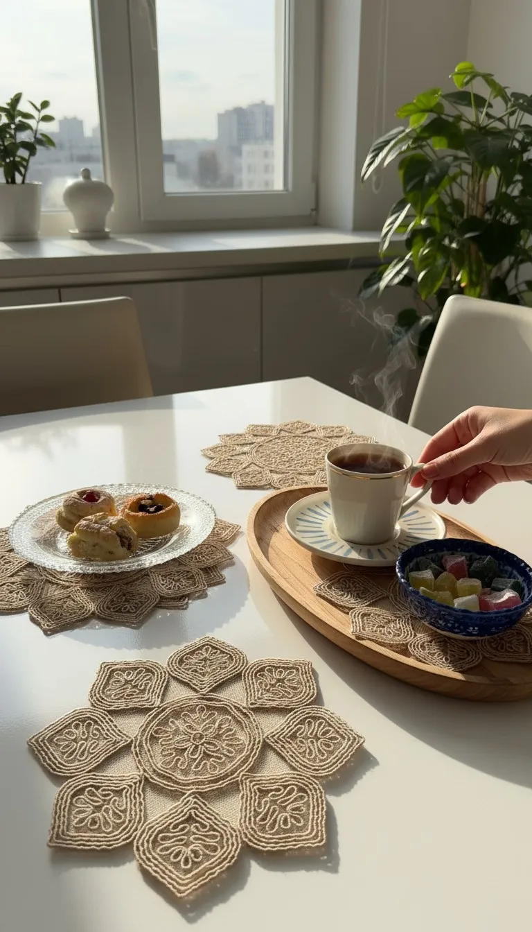 Nakışlı kahve sunumluk peçeteleri ile davetlerinizi özelleştirin.