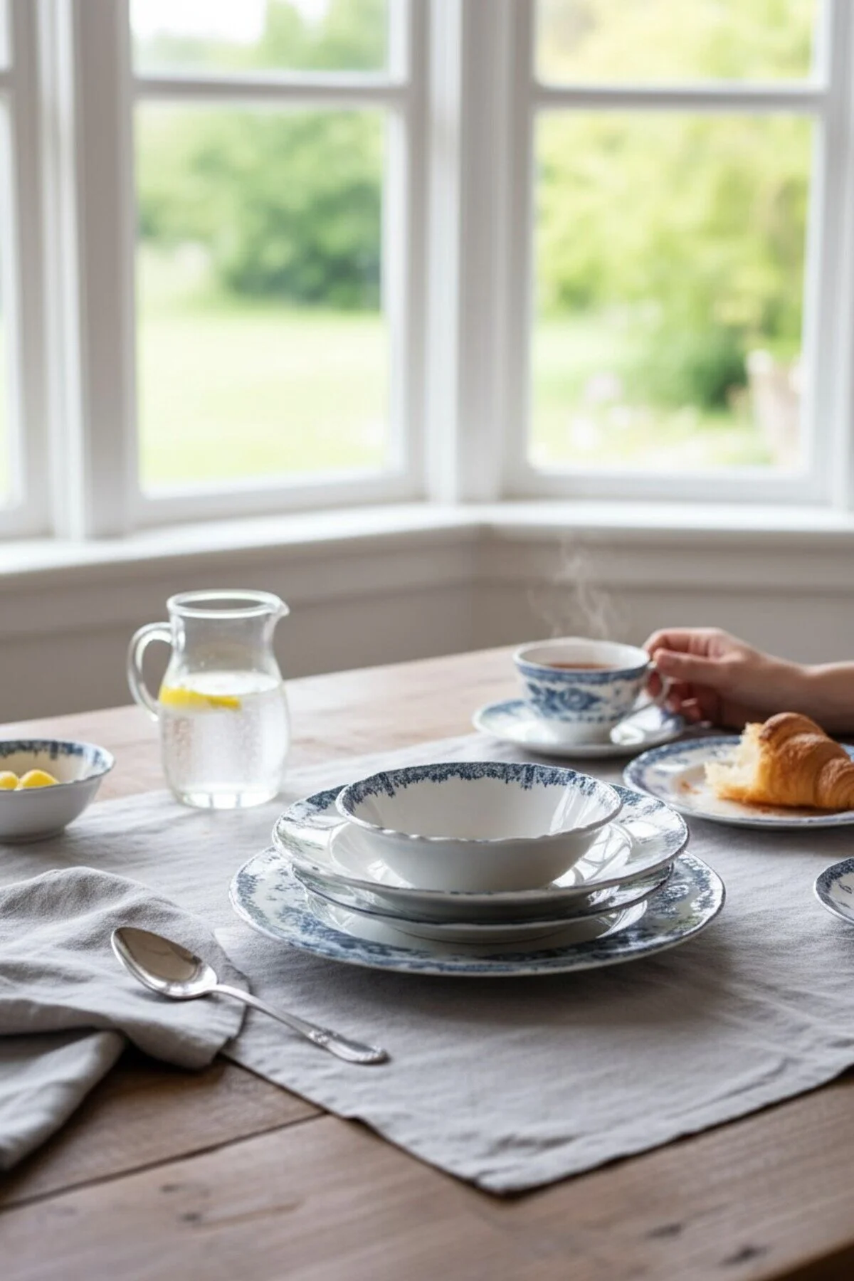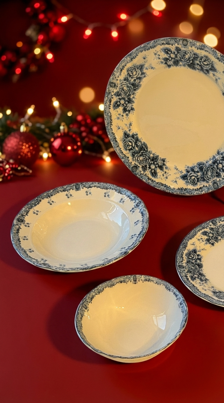 Blue Romance 24 Parça Desenli Porselen Yemek Takımı