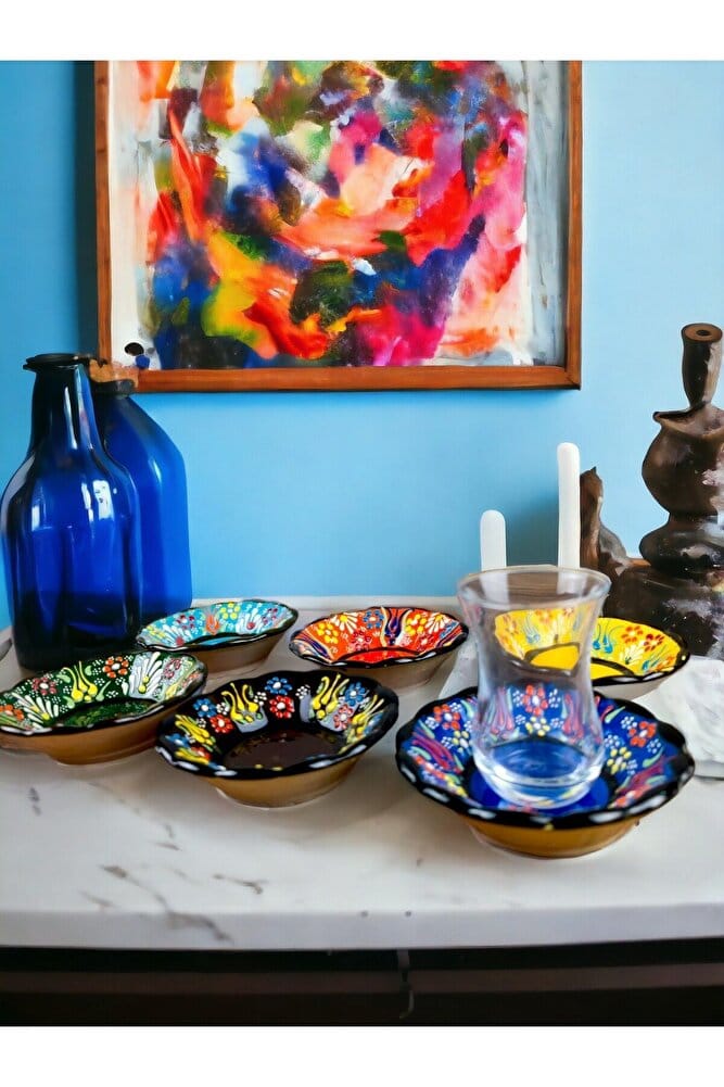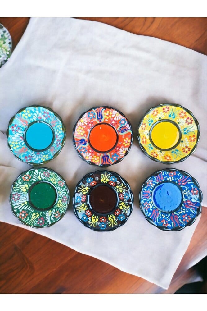 Çay Tabağı Otantik Desen Çini Dantel Kabartma 6 Parça