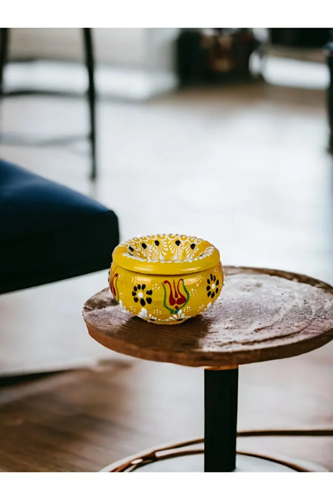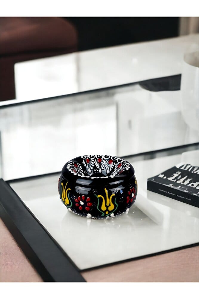 çini küllük dantel desen otantik kapaklı küllük el yapımı