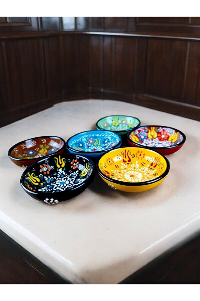 Geleneksel Türk sanatının zarif detaylarıyla süslenmiş, otantik desenler taşıyan bu seramik kase, dekorasyonunuza kültürel zenginliği yansıtır.; Yüksek kaliteli seramik malzemeden üretilmiş olup, uzun süreli kullanıma uygun dayanıklılık sunar.; Yuvarlak formuyla modern ve klasik mutfakların vazgeçilmez tamamlayıcısı olarak öne çıkar; her türlü çerez, kurabiye veya atıştırmalık için idealdir.; Set içerisinde yer alan 6 adet kase ile misafirleriniz için şık sunumlar hazırlamanıza olanak tanır.; 9 cm çapındaki bu küçük kaseler, her türlü sofra düzeninde rahatlıkla yer bulabilir ve görsel bir bütünlük sağlar.;