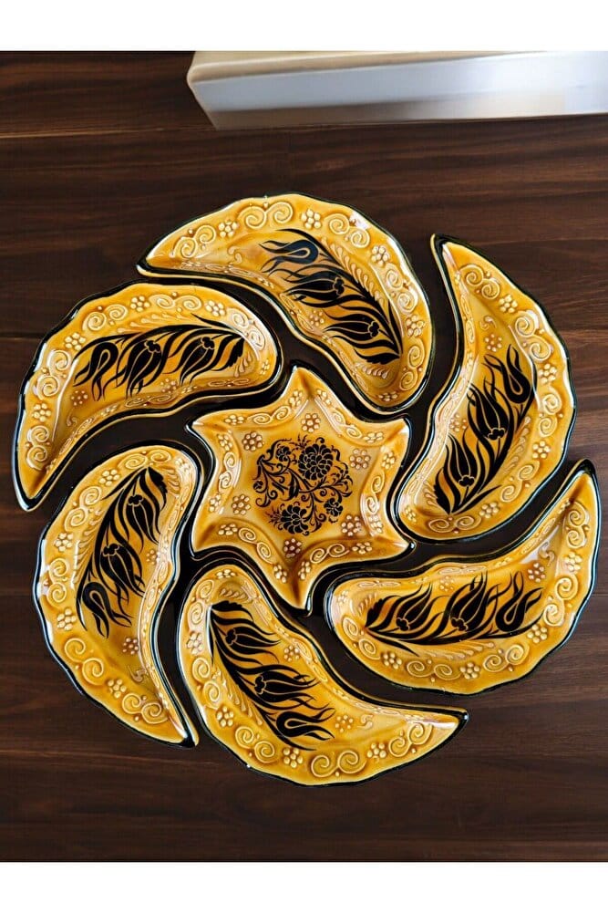 2'Li 20 cm Altın Fileli Porselen Kayık Tabak – Şık Sofralar İçin Lüks Sunum Tabağı