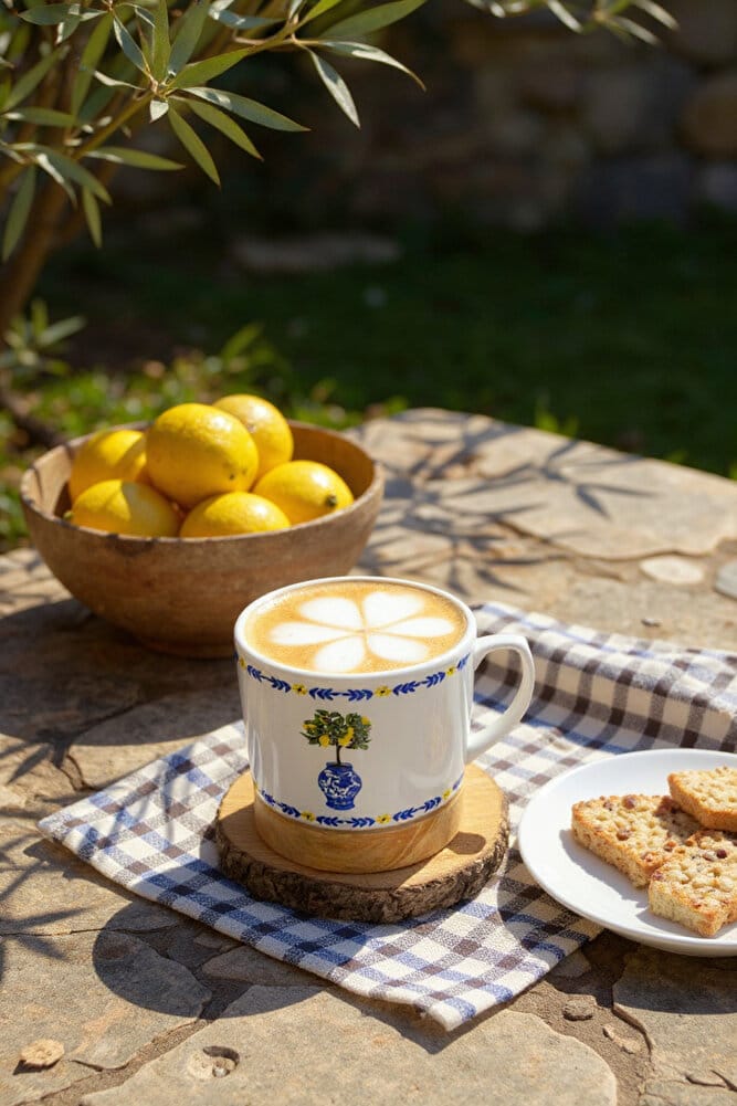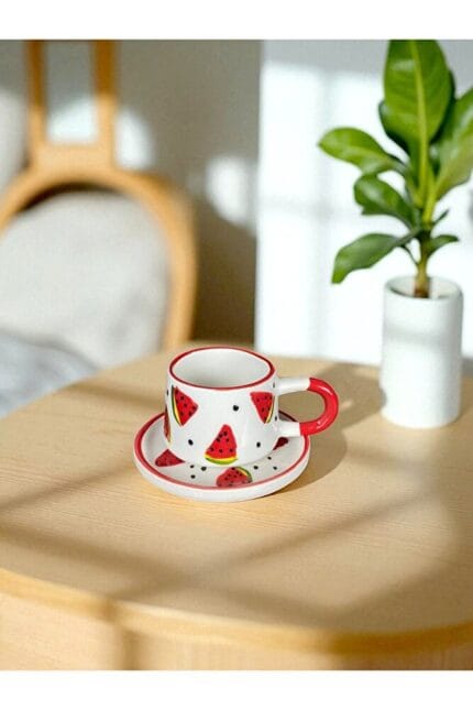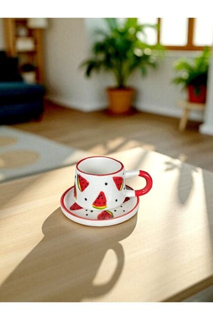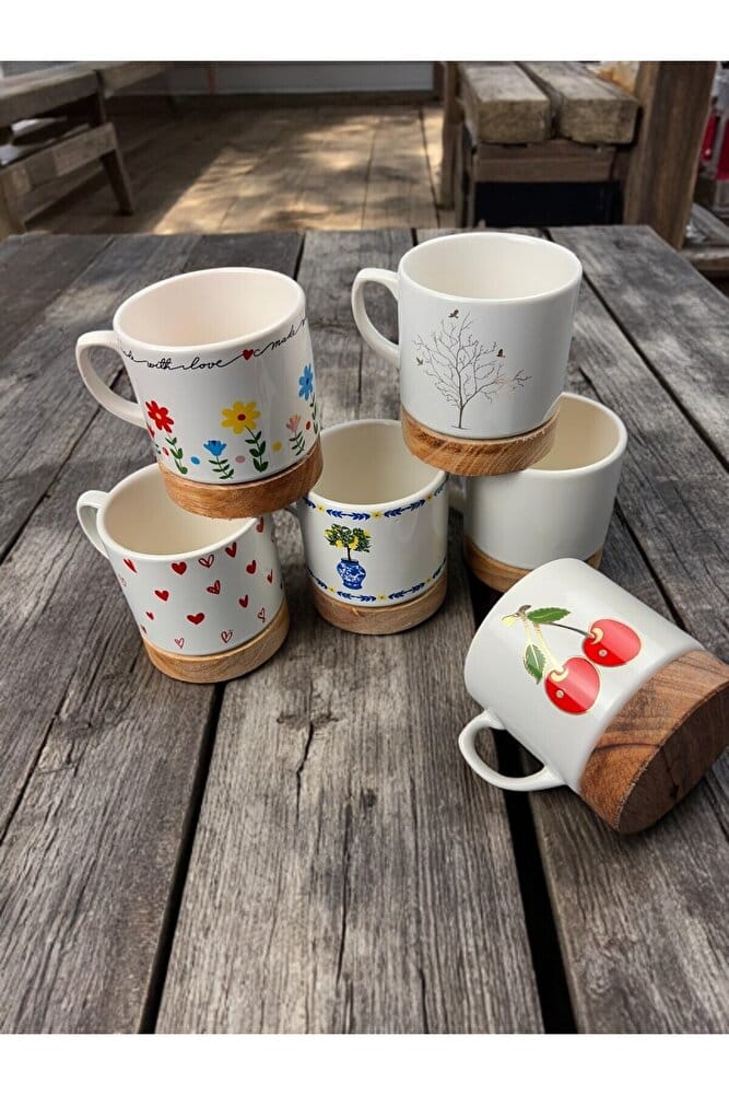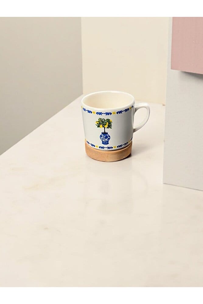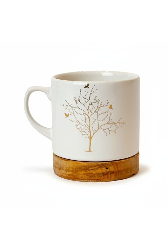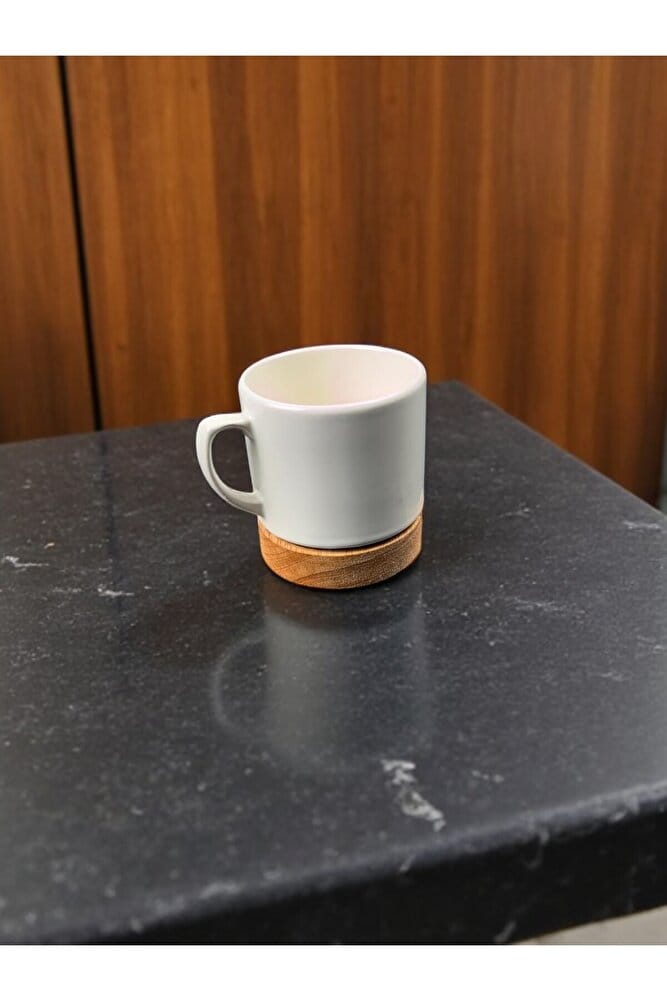 LİMBA AHŞAP TABANLI MODERN KUPA MUG SERAMİK
