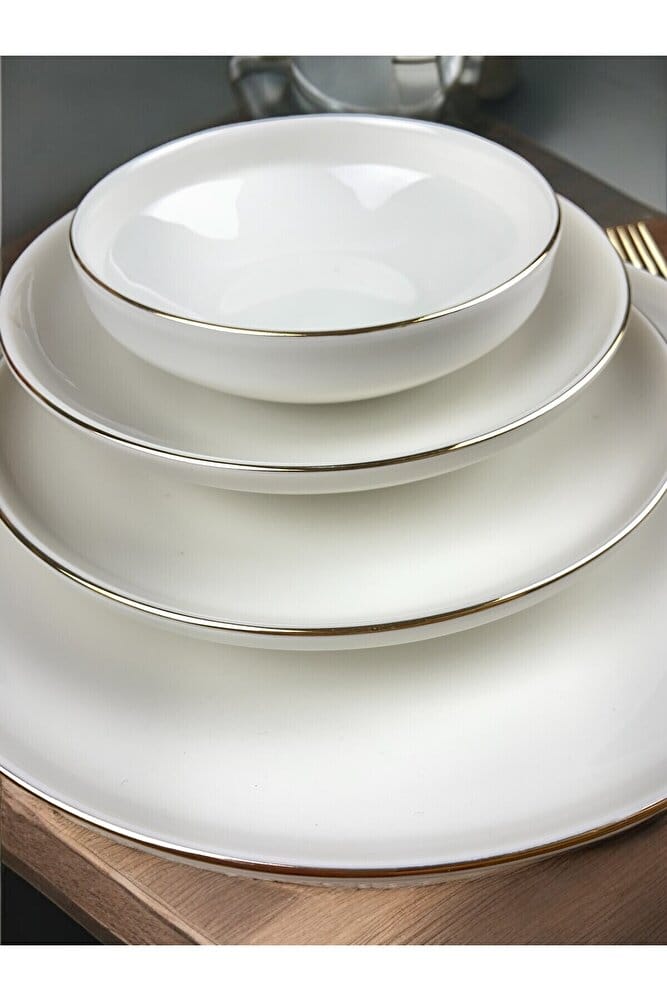 • – Altı kişilik ailelerin ihtiyaçlarına uygun, şık ve modern tasarımıyla dikkat çeken porselen yemek takımı.;