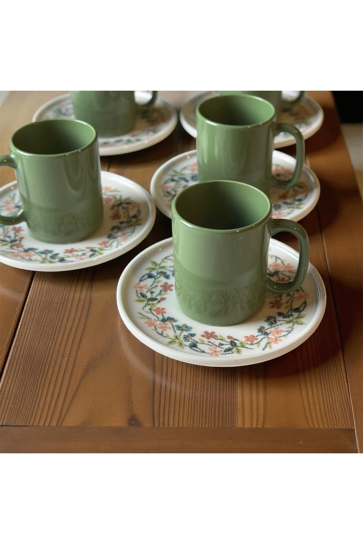 • Türkiye’de üretilen bu kahve fincan takımı, yerel işçiliğin kalitesini ve zenginliğini sofralarınıza taşır.