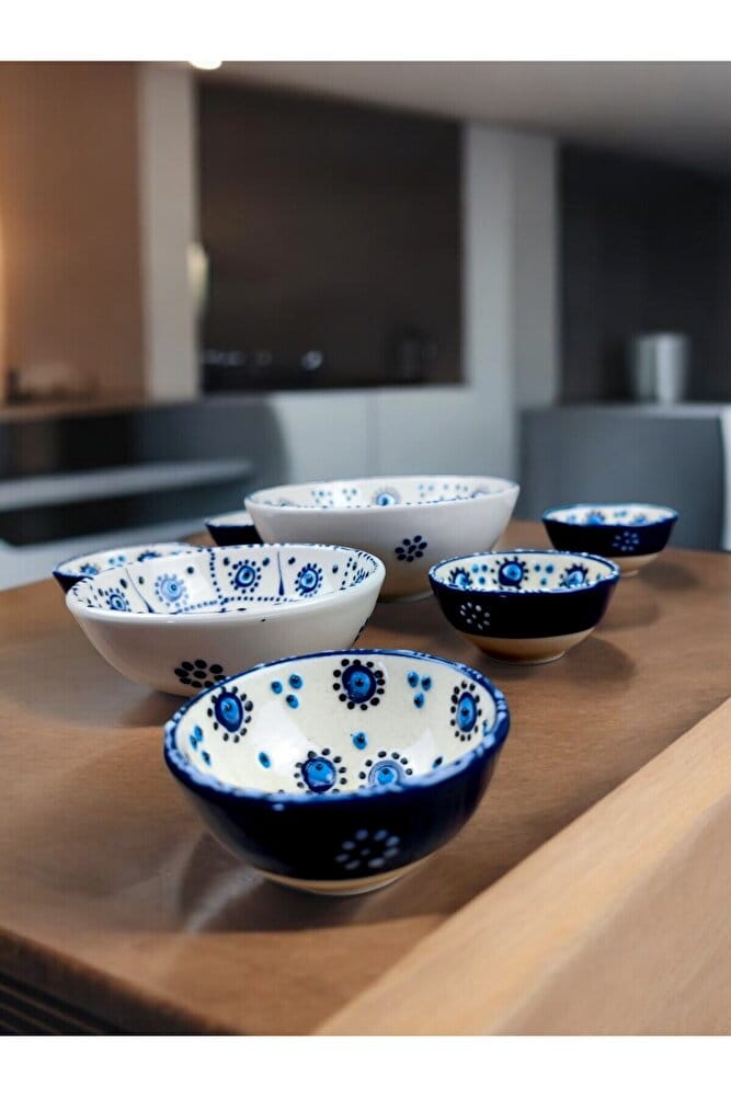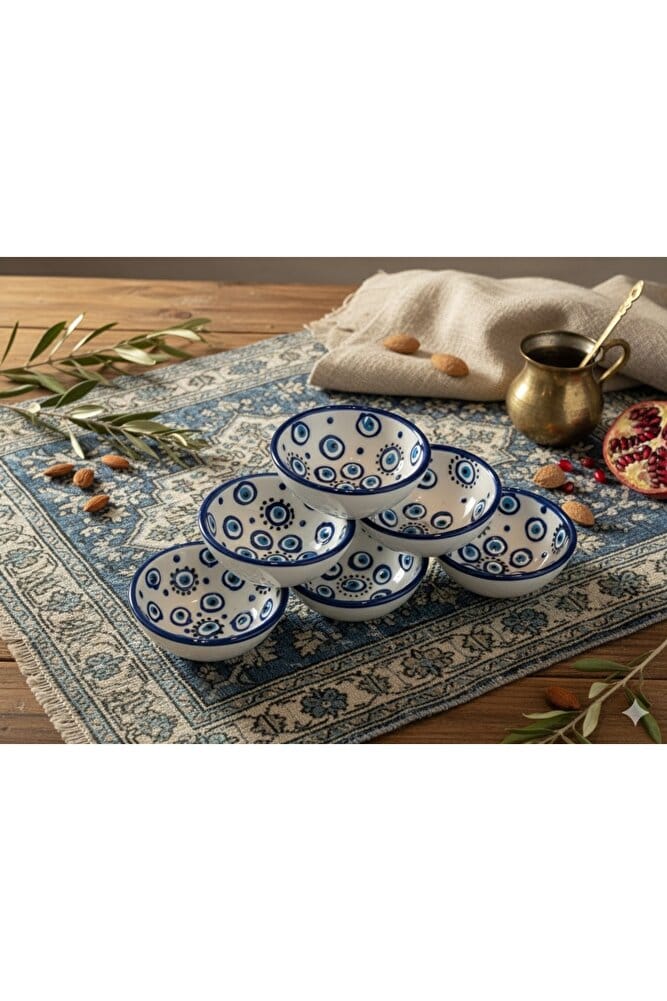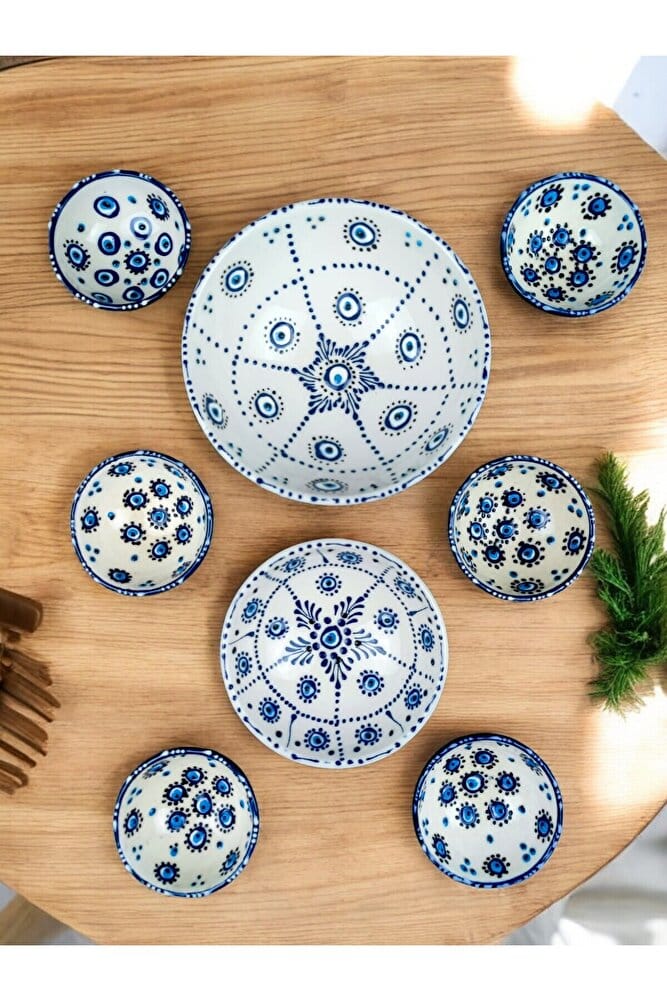 nazar boncuk kase seti beyaz ton 8 parça