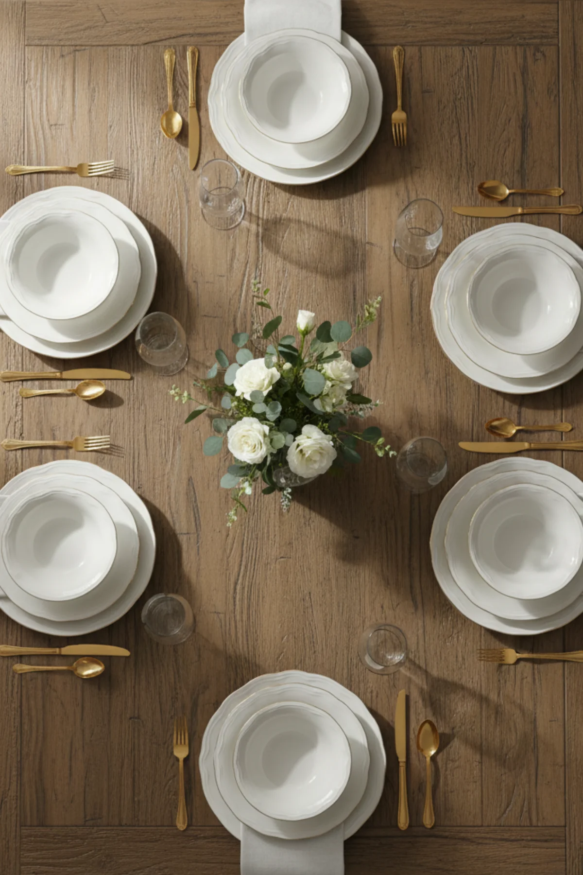 – 24 parça içeren bu yemek takımı, her bir parçasıyla zarafeti sofralarınıza taşır.;