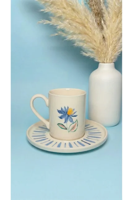 Porselen Acem Zade Lacivert Kahve Fincanı ve Çay Tabağı