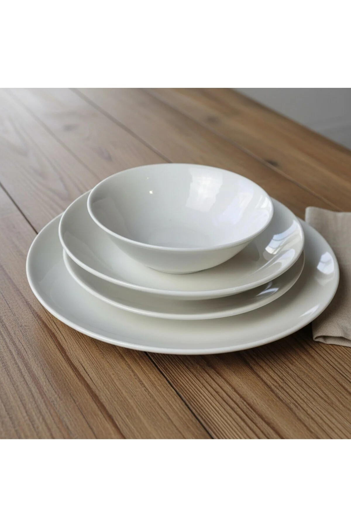 Porselen Soft Krem Yemek Takımı | Günlük ve Misafir 24 Parça